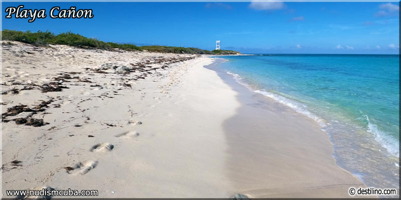 As mentioned above, Playa Canon is the virgin stretch of beach connecting the naturist sections of hotels Sol Cayo Santa Maria and Melia Buenavista, at the west end of the Cayo Santa Maria hotel zone. See here a map of all beaches. This beach stretches for a total of about 2.8 km, including about 1.8 km being clothing optional between the two hotels.